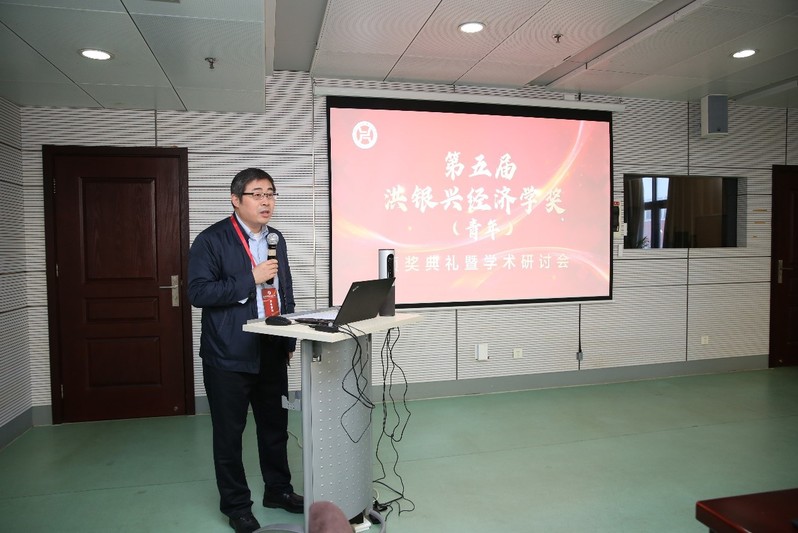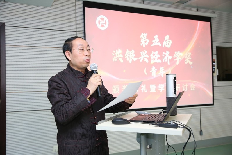 永利集团88304官网经济学院院长安同良教授宣读此次获奖名单,并介绍了获得本次洪银兴经济学奖的十位获奖人的简历及他们的获奖论文。