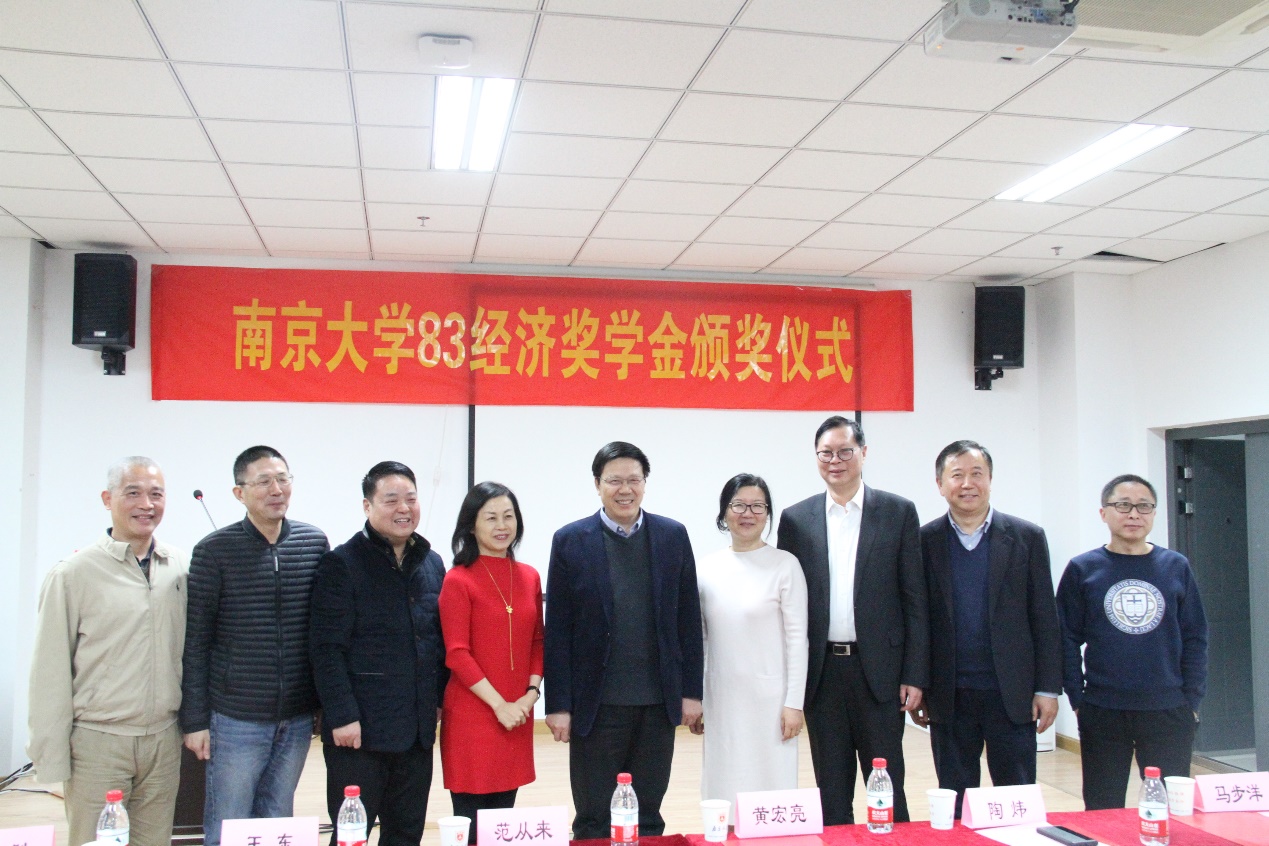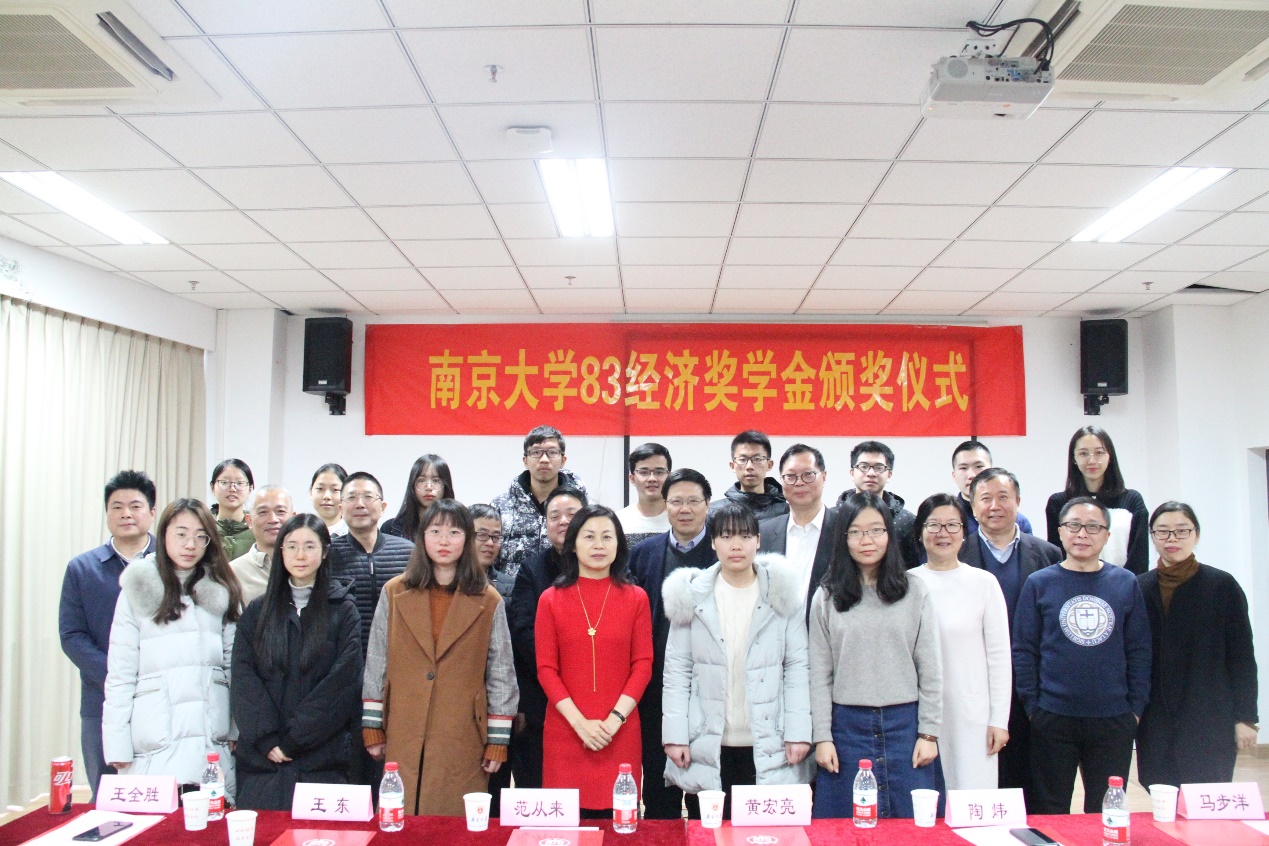 2018年12月14日下午3:00,2018年度永利集团88304官网83经济奖学金颁奖仪式在仙林校区就业指导中心303教室隆重举行。83经济校友代表江苏海外企业集团董事长黄宏亮、鸿意地产发展有限公司董事长陶炜、江苏美特林科特殊合金股份有限公司董事长马步洋、连云港鸿和地产有限公司董事长王东、江苏科成智能设备有限公司董事长鲁波、永利集团88304官网校友总会加拿大温哥华分会会长李捷、鸿意地产发展有限公司副总经理宋利群、华泰证券中央市场部负责人荆冰一行与永利集团88304官网校长助理、长江学者范从来教授共同出席颁奖仪式。另外,出席颁奖仪式的还有永利集团88304官网管理学院副院长王全胜教授,金融与保险学系系主任林辉教授和学工办负责老师。仪式由林辉教授主持。