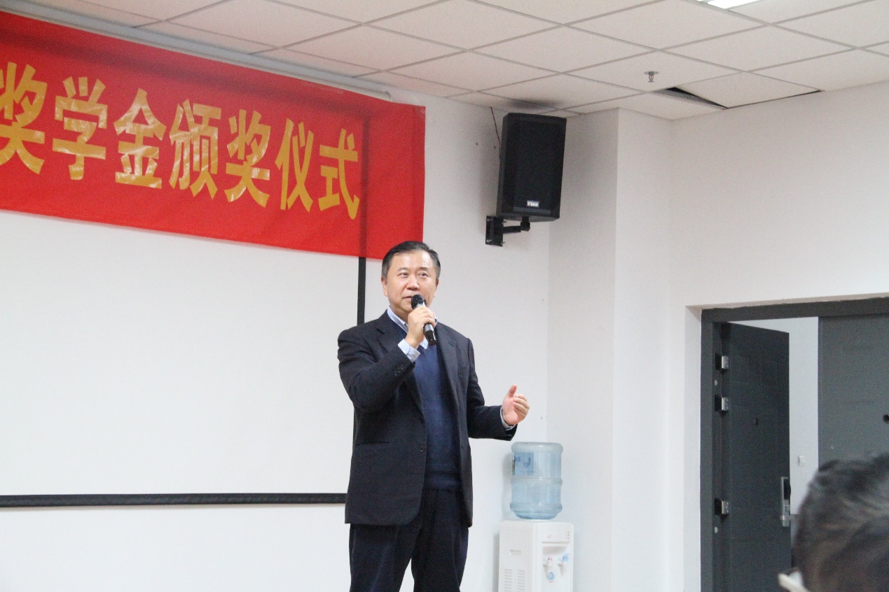 接下来,83经济奖学金设奖方、校友代表马步洋先生致辞。马步洋先生从“诚朴雄伟、励学敦行”的校训谈起,阐明了他对校训的深刻理解:认为真正达到雄伟的高度是极其困难的,但只要勤勉从事,尽己所能,做到问心无愧,就是值得肯定的南大人。