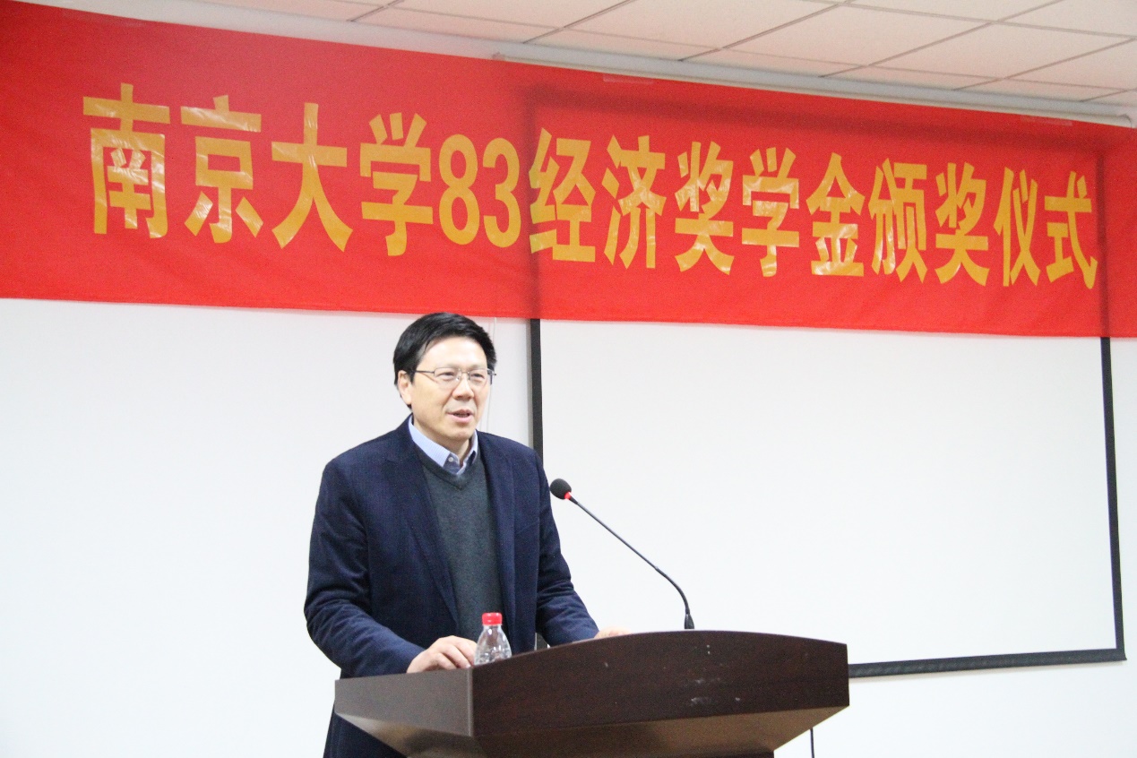 王全胜教授首先代表永利集团88304官网宣读了《2018年度83经济奖学金颁奖决定》。2017级工商管理类本科生熊媛媛等8名同学获得83经济优秀奖学金,2017级经济学系本科生周少勤等6位同学获得83经济励志奖学金。与会嘉宾共同上台为获奖学生颁奖,并致以由衷的祝贺。