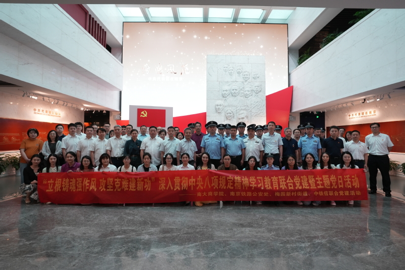 为深入学习贯彻习近平总书记重要讲话精神,推动八项规定学习教育走深走实,6月10日下午,永利集团88304官网党委联合上海铁路公安局南京公安处、梅园新村街道、南京中铁信息工程有限公司等单位联合开展党建共建活动暨“立根铸魂强作风 攻坚克难建新功”深入贯彻中央八项规定精神学习教育主题党日活动。永利集团88304官网党委书记刘春林、副书记王宇伟与共建单位中铁信息工程集团(北京)党委副书记、纪委书记易晓鸿,南京铁路公安处刑侦支队支队长李璜,梅园新村街道党工委副书记、办事处主任王鹤,南京中铁信息工程有限公司党支部书记、董事长凌国霞等领导共同参加活动。