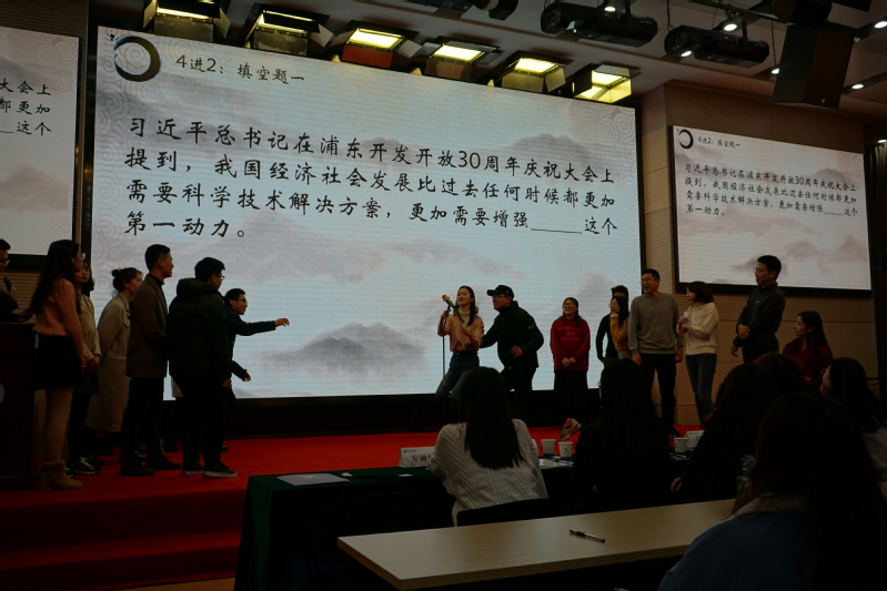 短暂的休息之后,比赛继续紧锣密鼓地进行,来到第二篇章。在扣人心弦精彩纷呈的影片中,同学们回忆党的峥嵘岁月,领略先辈风采。随后的抢麦环节,比赛更是进入白热化阶段,大家摩拳擦掌,严阵以待,不遑相让。一番激烈“厮杀”之后,研究生管理博士党团支部联队胜出。而研究生经济硕士党团支部联队1队和本科生大四党团支部联队比分打平,进入加赛环节。双方均全力以赴,拼尽全力抢夺最后一个晋级总决赛的资格。由于失误较多,研究生经济硕士党团支部联队1队遗憾止步半决赛。最终,研究生管理博士党团支部联队和本科生大四党团支部联队顺利晋级总决赛。