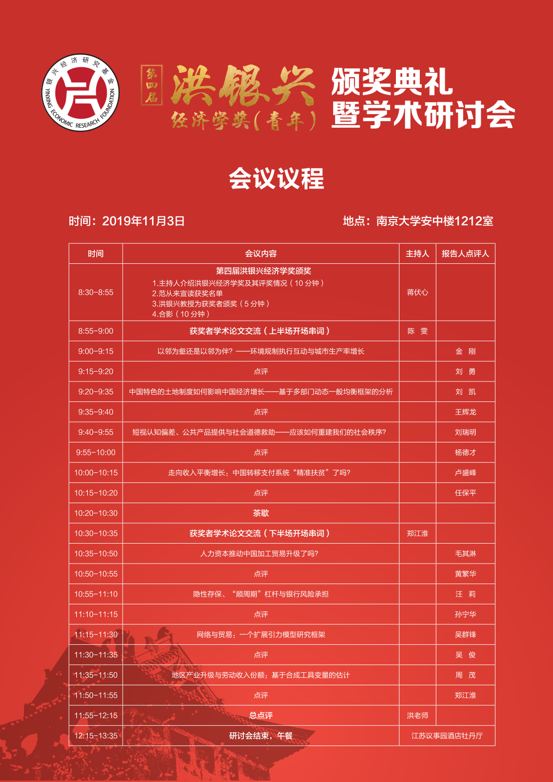 第四届洪银兴经济学奖(青年)颁奖典礼暨学术研讨会于2019年11月3日在永利集团88304官网隆重举行,取得了圆满的成功。