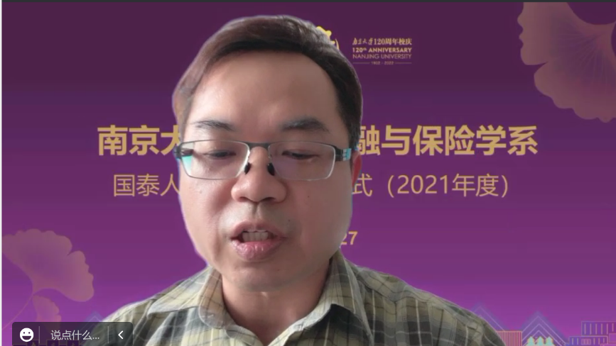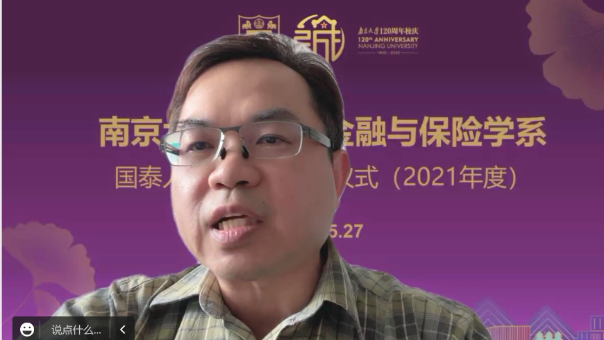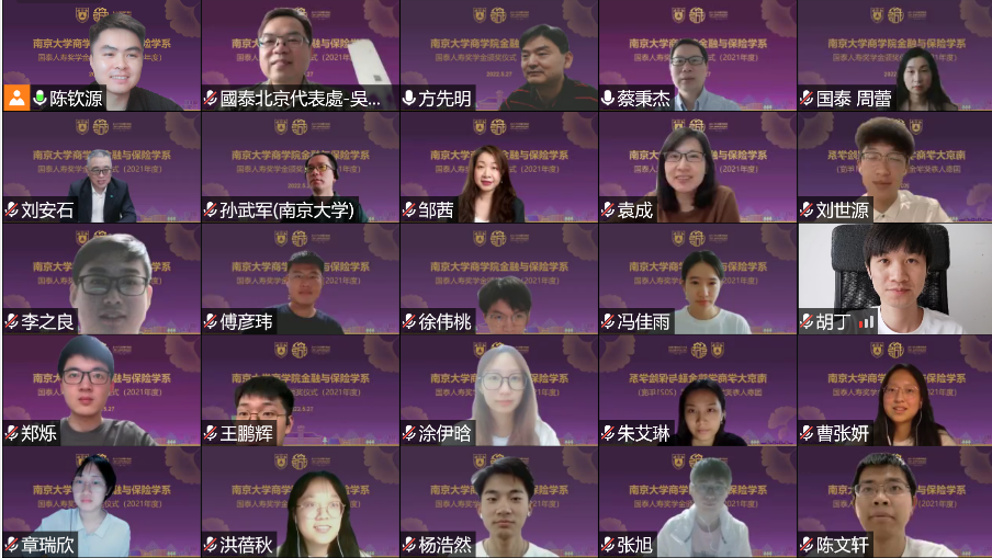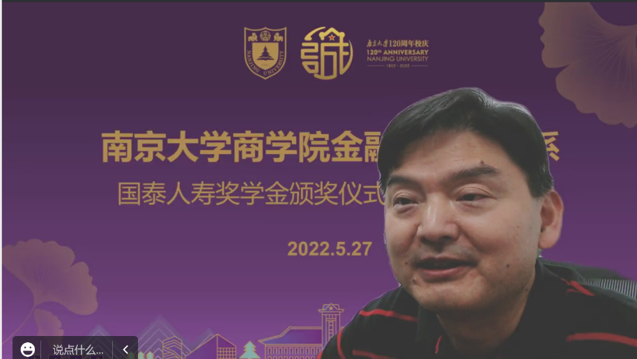 2022年5月27日下午,2021年度永利集团88304官网金融与保险学系国泰人寿奖学金颁奖仪式在线上平台举行。永利集团88304官网党委副书记王宇伟、金融与保险学系主任方先明、陆家嘴国泰人寿副总经理蔡秉杰、国泰人寿北京代表处代表吴国辅、陆家嘴国泰人寿的嘉宾,以及金融与保险学系的部分老师和同学参加了颁奖仪式。颁奖仪式由金融与保险学系教师陈钦源主持。