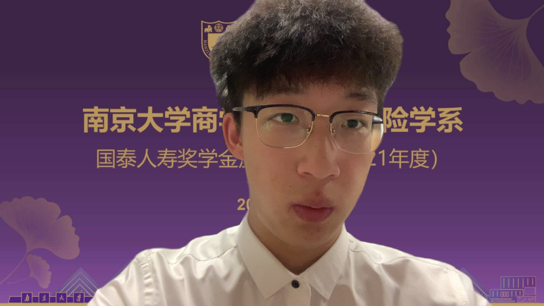 2018级金融与保险学系保险学专业的本科生刘世源作为获奖学生代表发言。他向国泰人寿以及金融与保险学系表达了诚挚的感谢,回顾了自己本科阶段的学习生活,并对未来做了展望,表示希望有机会进入像国泰人寿这样优秀的、国际化的保险企业进行工作和学习,早日承担属于自己的社会责任。