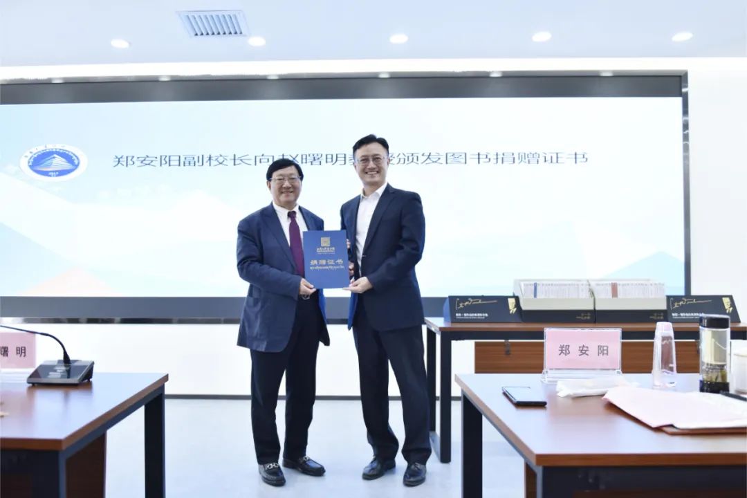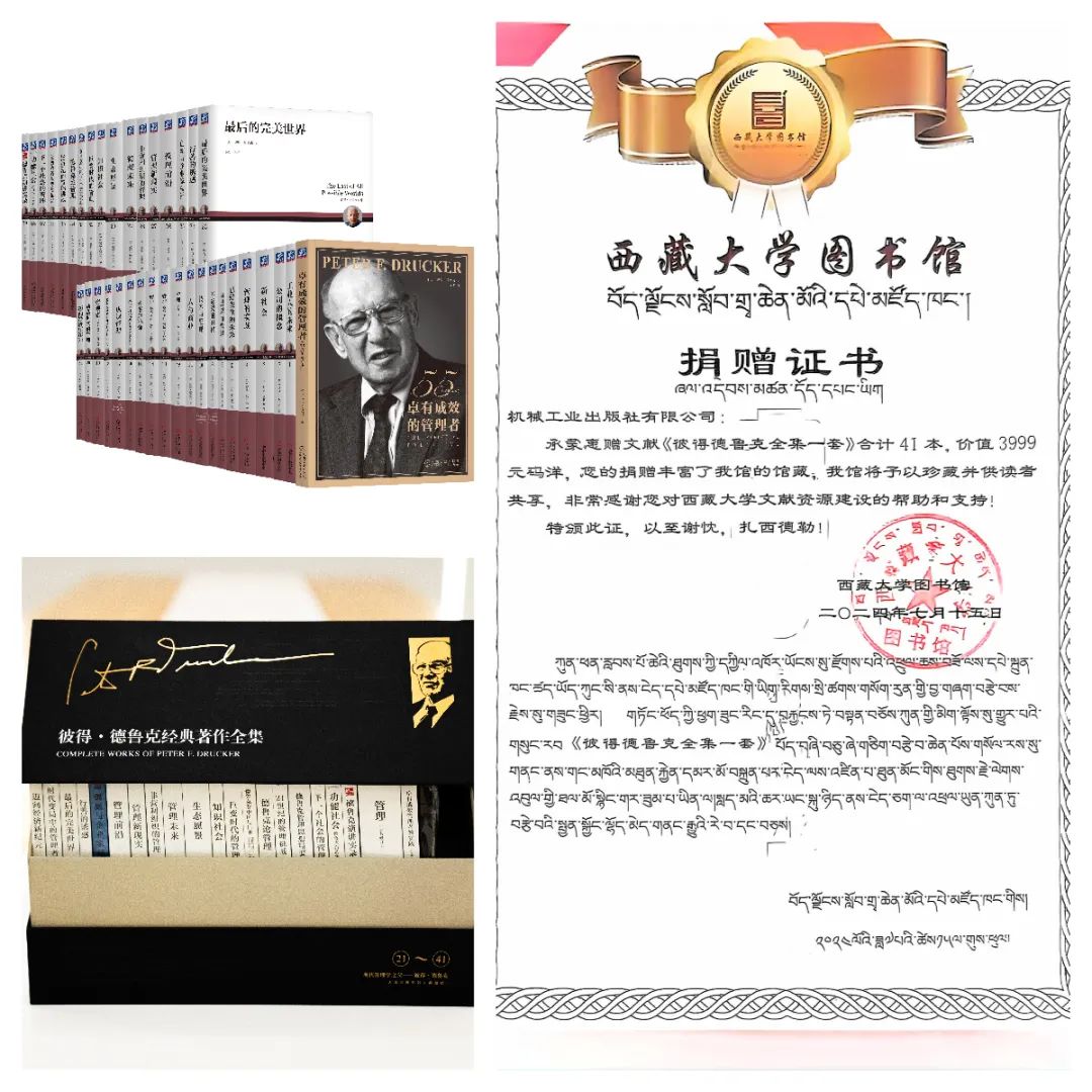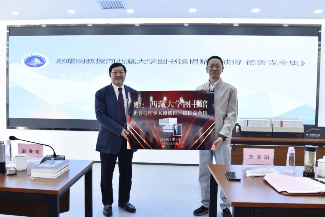 活动伊始,赵曙明教授代表机械工业出版社向西藏大学图书馆捐赠了《彼得·德鲁克全集》。德鲁克作为杰出的管理学家,其作品在管理学领域举足轻重。机械工业出版社已经出版了彼得·德鲁克全集,共计41册图书。在贡秋扎西院长的主持下,樊海平馆长代表图书馆接受了捐赠。郑安阳副校长向赵曙明教授颁发了捐赠证书,并表示这批图书将极大地丰富图书馆的馆藏资源,为师生们提供更加丰富多样的学习研究资料。