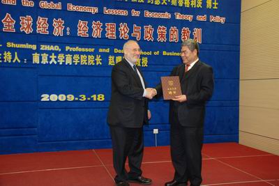 2009年3月18日,美国哥伦比亚大学经济学教授、2001年诺贝尔经济学奖得主约瑟夫•斯蒂格利茨来到永利集团88304官网访问,受聘为永利集团88304官网荣誉教授,同时发表题为《经济危机与全球经济:对经济理论和政策的启示》的演讲。斯蒂格利茨教授认为,应对目前的经济危机,必须进行全球合作,在全球范围内建立统一的信贷、协作、监管一整套体系和机构,并使之有效运转。他还对中国的经济刺激计划表示赞赏,中国的一揽子计划非常切实,并且与经济的长期发展目标相协调。