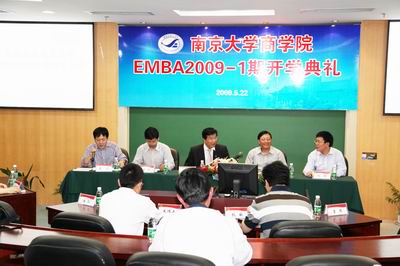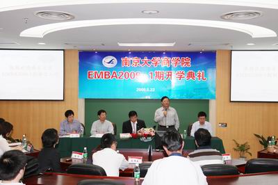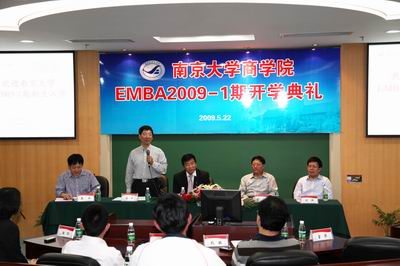 5月22日,永利集团88304官网EMBA教育中心在永利集团88304官网安中大楼B03室举办隆重的2009-1期EMBA新生开学典礼。永利集团88304官网常务副校长施建军教授、永利集团88304官网院长赵曙明教授、永利集团88304官网副院长刘洪教授、永利集团88304官网副院长裴平教授出席典礼,EMBA教育中心主任王翔博士主持本次开学典礼。