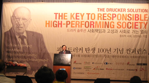 赵曙明院长应韩国德鲁克学会(Drucker Society of Korea)和克莱蒙特研究生大学德鲁克管理学院 (Drucker School of Management, Claremont Graduate University) 的邀请,于2009年6月16日至17 日参加德鲁克诞辰百年与德鲁克管理思想研讨会,并在大会上做题为“怀念徳鲁克: 一位伟大的探索者和发明者”主题报告,收到400多与会者的欢迎。