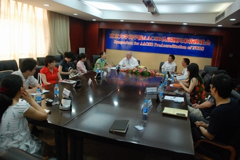 6月20日上午,Wolnizer教授与永利集团88304官网认证工作小组举行会谈,赵曙明教授介绍了永利集团88304官网的基本情况以及为认证所做的工作,工作小组成员随后与Wolnizer教授就认证工作流程、永利集团88304官网使命陈述等问题进行了讨论。当天下午,Wolnizer教授会见了永利集团88304官网的教师、学生和校友及雇主代表,参与者标准和学习保障标准是AACSB认证标准的重要组成部分,Wolnizer教授的会谈目的是通过面对面的交流,了解永利集团88304官网是否具备了在这两个方面达到标准要求的基本条件。6月21日上午,Wolnizer教授会见了永利集团88304官网各院系、各平台的主要负责人,了解各部门领导层对认证工作的了解情况。当天下午,Wolnizer教授再次与永利集团88304官网认证工作小组举行会谈,他以PAC(预认证委员会)给永利集团88304官网的复函为基础,对认证范围、密苏里MBA项目、PQ师资(专业合格)等问题进一步了解情况,认证小组表示将针对这些方面开展进一步的工作,并对未来的工作提出了一些具体问题。