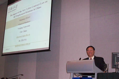 近日,永利集团官网院长赵曙明教授应国际工业关系协会主席Russell Lansbury教授之邀,赴澳大利亚悉尼参加了第15届国际工业关系协会世界大会(The 15th Congress of the International Industrial Relations Association), 并在会上作了题为”中国新的劳动合同法对劳动关系的影响”的报告。