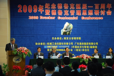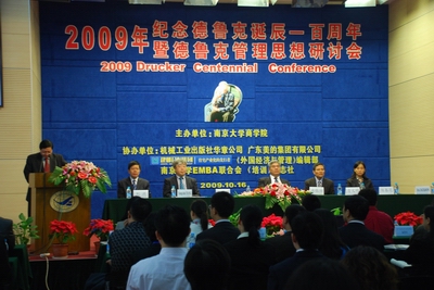 10月16日上午9点,“2009纪念德鲁克诞辰100周年活动暨德鲁克思想研讨会”在永利集团88304官网安中楼报告厅隆重开幕。活动由永利集团88304官网主办,机械工业出版社华章公司、广东美的集团有限公司、南京建邺城镇建设开发集团有限公司、《外国经济与管理》编辑部、《培训》杂志社、永利集团88304官网EMBA联合会协办,永利集团88304官网EMBA教育中心、EDP中心和MBA教育中心联合承办,邀请了国内外著名的管理学家、德鲁克思想研究者以及国内知名企业家,吸引了400多位企业家及德鲁克思想爱好者参加研讨。