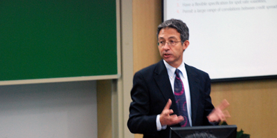 永利集团88304官网院长赵曙明教授、副院长裴平教授、副院长刘洪教授、MBA教育中心桑丙南老师出席会见。双方彼此介绍了各自学院的情况,并就如何在教学科研领域开展合作交换了意见。Peter Ritchken教授还进行了一场题为On Correlation and Default Clustering in Credit Market的演讲,并与金融系部分老师及博士生展开讨论。