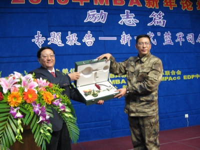 下午2:00,进入了本届论坛的励志篇。首先由永利集团88304官网张二震书纪宣读了永利集团88304官网聘请南京军区某摩步旅旅长王鹏担任永利集团88304官网学生成长导师的决定,接着由永利集团88304官网院长赵曙明教授向王鹏颁发聘书。王鹏先生是南大81级政经专业的本科毕业生,现在,拥有硕士学位,是多所院校的客座教授;演兵场上,他作为我军一支新型模拟敌军部队的“头头”,是一支“磨刀石”部队的指挥官。王旅长从现代化战争蓝军司令的角度深入解读了现代化战争的精要,并引申到现代商战中。商场如战场,在这一刻会场所有人都被他那种军人特有的精神所感动。