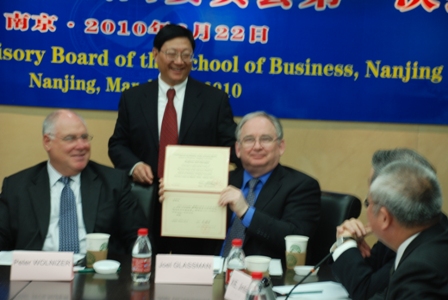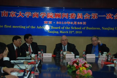出席此次会议的委员包括:清华大学经济与管理学院原院长赵纯均教授、悉尼大学永利集团88304官网院长Peter Wolnizer教授、密苏里-圣路易斯大学学术事务副教务长、国际研究中心主任Joel Glassman教授、日本九州大学经济学部Noriyuki Shutto教授、西交利物浦大学执行校长席酉民教授、深圳盐田港前董事总经理谢锦添博士、江苏苏豪国际集团股份有限公司董事长沙卫平先生。永利集团88304官网副校长闵铁军教授、永利集团88304官网院长赵曙明教授、副院长刘洪教授、副院长裴平教授、院长特别助理兼认证办公室主任刘厚俊教授出席会议。此外,南京学永利集团88304官网AACSB认证导师、香港科技大学经济与管理学院院长Leonard Cheng 教授、永利集团88304官网客座教授John Hulpke也出席会议。