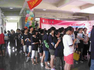 深蓝色的服装、活泼动感的“商”字贴纸、真诚的微笑、周到的服务……新生报到现场人头攒动,商院的志愿者也穿梭不息。扫描、登记、户口迁移办理、买军训服装、寝室落脚……我们的微笑使者一路同行。他们排队时主动与新生话家常、讲商院趣闻;拥挤时让新生在一旁休息,自己冲进人群代为办理;遇到疑问时互相交流建议;安顿好新生后不及休息就迅速归队,等待为下一位新生服务。微笑使者们用真诚的服务让新生感受到商院大家庭的温馨。