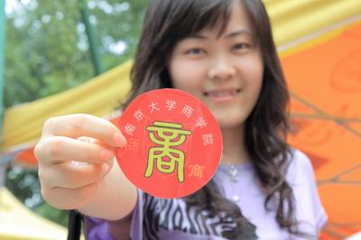 2010级报到的新生,每人在进行注册登记后,均会得到一枚红色的肩贴标签,图案为商院的标志,以及“商”字的美工字体,而志愿者服务的同学均贴有蓝色的图案一样的肩贴标签。采取这样的措施,不仅加强了新生对学院认同感和归属感,而且能使在校园服务的商院同学和志愿者能够第一时间认出商院的同学,及时为新生服务。许多新同学把标签贴在自己的衣服上和随身携带的手提包上,非常的喜欢。一名10级新生告诉我们说:“商院的标签很好,我们走在校园里,自豪感油然而生。”