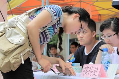 在本次迎接新生的活动中,商院迎新的另一亮点就是标有“爱心答疑”牌子的“新生爱心答疑站”,新生在入校过程中遇到的各种问题都可以在答疑站得到回答和解决。同时为每位新生印发了“爱心帮助贴士”,内容包括各类校内生活常识。热心的学长学姐们对新生的问题进行了耐心的解答,寝室的位置、食堂的口味、购物的地点、学费的缴纳、校园卡的使用,尽管都是些琐碎和日常的问题,但是这些问题也是新生在入校过程中最需要得到解决和帮助的。小小的爱心答疑站充满了浓浓的人情味,答疑的哥哥姐姐们开玩笑说自己是知心哥哥,贴心姐姐,但是正是这样的知心和贴心使得商院的迎新充满了浓浓的人情味。