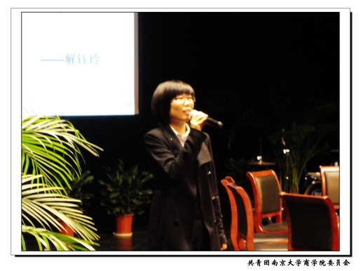 活动首先由来自08级金融与保险学系的朱师怀带着各位同学一起走进他在法国高等经济永利集团88304官网SSEC交换期间的生活、学习,分享独行欧洲13国时的际遇与启迪。之后,来自10级的两位新同学,在一段悠扬的乐曲中,把观众们从浪漫的爱琴海畔带到美丽的彩云之南,共同领略了钟灵毓秀的傣族舞蹈。接着,已经毕业的06级解钰玲学姐则从实践实习的角度,与学弟学妹们分享了她的麦肯锡之旅,并结合自身经历提出了“抓好学业,干好工作,做好实践”的建议。