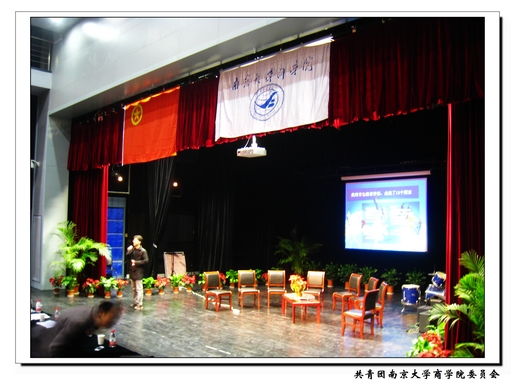 2010年11月23日下午,“我的支部我的团”新生主题团日暨永利集团88304官网形势政策课在仙林校区敬文活动中心小剧场举行。永利集团88304官网副院长裴平老师、校团委书记王靖华老师、教务处副处长张亚权老师、校团委副书记焦瑞华老师、校团委副书记索文斌老师、栖霞团区委副书记冯欣,以及各年级辅导员出席了本次活动。08级金融与保险学系付伟和09级市场营销系杨舒钰主持了本次活动。