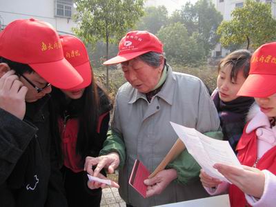首次活动以“学雷锋”日为契机,服务对象定位于燕子矶街道社区居民,以金融知识普及为主题。同学们利用寒假期间开展社会调研,了解居民需求、收集金融产品信息,制作了金融手册及展板,内容包括:假币的识别、金融产品的类型、主要理财产品介绍、使用金融产品的风险及预防等。同学们在活动现场讲解了识别假币的若干窍门,根据当地居民的实际生活和收入水平对市场上流行的股票、基金、分红保险等金融产品做了适当的讲解,就百姓们关注的问题,如银行产品的盈利性、资金的流动性等进行了一一解答,并帮助居民联络银行相关工作人员开展咨询工作,解决了咨询居民在生活中遇到的金融难题。