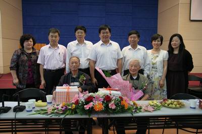 院领导与华彬清、沈海山两位寿星合影