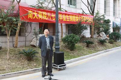 下午4点,校友们返回鼓楼校区在安中楼前和同学们当年的任课老师、学工老师以及校院领导合影留念。永利集团88304官网名誉院长赵曙明、永利集团88304官网副校长杨忠、永利集团88304官网党委书记张二震、永利集团88304官网常务副院长范从来、管理学院院长陈传明、永利集团88304官网副院长裴平等领导和当年的任课老师沈海山、李松林、章德、徐开明、刘厚俊、刘东、梁东黎、杨东涛、史有春等参加了合影及“八七级校友捐赠安中大楼绿化景观揭幕仪式”。揭幕仪式上,主持人左建伟校友对本次活动筹划工作做了简单介绍。校友卜涛对绿化景观的寓意做了介绍:绿地花木,郁郁葱葱标志母校充满生机活力,珍贵的“楷树”取自孔子学府的树种,其中一棵大楷树象征“老师”,俩棵小楷树象征“学生”,石碑上“千载楷模”四个大字,一语双关了情深意浓的师生情谊。赵曙明名誉院长代表商院对八七级校友的返校表示热烈欢迎,对校友们的捐赠表示衷心感谢。他祝愿校友们事业有成,健康幸福,常回家看看。接着,院党委书记张二震老师和卜涛校友共同为景观揭幕。