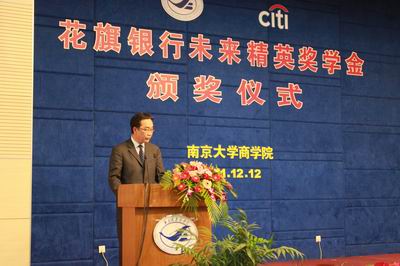 12月12日下午2点,首届“花旗银行未来精英奖学金”在永利集团88304官网安中楼报告厅隆重举行。花旗银行(中国)有限公司董事长兼首席执行官欧兆伦先生,花旗银行人力资源部副总监王莉女士、花旗银行南京分行行长姚健翔先生、永利集团88304官网副校长薛海林先生、永利集团88304官网校长助理刘晓丽女士、永利集团88304官网常务副院长范从来教授、党委副书记吕亚红老师等出席了颁奖仪式。会议由永利集团88304官网常务副院长范从来教授主持。首先,由永利集团88304官网薛海林副校长致辞,他对花旗银行(中国)有限公司在永利集团88304官网设立“未来精英奖学金”表示感谢,对获奖同学表示祝贺并对同学的未来提出期望。随后,花旗银行(中国)有限公司总裁欧兆伦先生致辞,欧总裁介绍了花旗银行概况和在中国区的运营状况,并就花旗银行在人才培养、江苏地区业务发展作了介绍。接下来永利集团88304官网校长助理刘晓丽主任宣读了《2011年度“花旗银行未来精英奖学金”奖励决定》。花旗银行欧兆伦董事长和永利集团88304官网薛海林副校长共同为获奖同学颁奖并摄影留念。随后,2010级政治经济学专业季伟同学作为研究生获奖同学代表,2009级产业经济学专业张静同学作为本科生获奖同学代表发言。颁奖仪式结束后,花旗银行人力资源部副总监、中国区英才发展主管王莉女士发表“管培项目与职业生涯规划”主题讲座并与现场听众互动。
