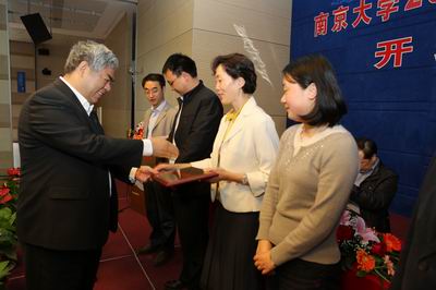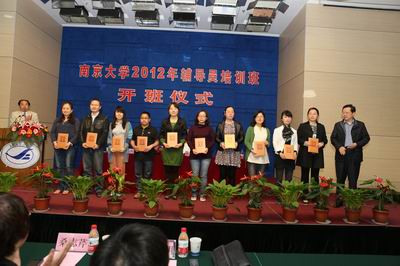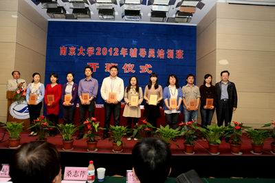4月19日上午,我校2012年辅导员培训班开班仪式在鼓楼校区举行。校党委书记洪银兴出席仪式并作首场辅导报告。校党委副书记朱庆葆,党委常委、组织部长王志林,学工部、研工部、心理中心、就业中心有关负责同志,以及各院系学工办主任、辅导员共100余人参加了本次仪式。开班仪式由党委学生工作部部长刘源主持。王志林部长宣读了《永利集团88304官网关于表彰学生工作先进集体和先进个人的决定》。洪银兴书记和朱庆葆副书记分别为10家“学生工作先进集体”和20名“优秀辅导员”颁奖。永利集团88304官网学生工作办公室获得“学生工作先进集体”称号,周媛、温馨获得“优秀辅导员”。永利集团88304官网辅导员周媛代表获奖辅导员上台发言。