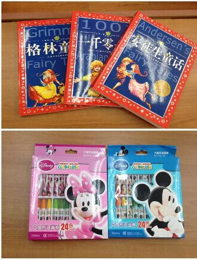 图三:王全老师为这次捐赠活动专门购买了全新的书籍和画笔