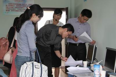 图九:老师们翻看义工们写的救助日志。
