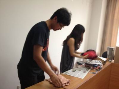 图一:永利集团88304官网的研究生同学也参与到这次活动中来,很细心地帮助我们将大人和儿童衣服区分开来,并且一一叠好。