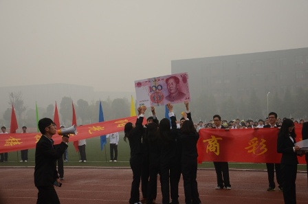 开幕式上,永利集团88304官网的入场式表演可谓别出心裁,一改往日传统,令人耳目一新。只见商院学子一个个精神抖擞、昂首阔步地走向主席台,他们身着西装,脚踏皮鞋,拿着手机、平板电脑不停地与“客户”大谈股票走势、生意得失,俨然一群商业精英。然而很快,商院学子们就向全场展示了他们热烈活泼的另一面,伴着欢快的节奏,跳起了别具一格的“算盘舞”,更是打出了“快乐健身强我辈青春体魄,阳光竞技铸商院体育雄风”的对联,充分展现自己独一无二的青春个性。他们的表演引来了同学们阵阵惊叹与掌声。这精彩的入场式表演,为商院学子征战运动会打响了头一枪,迈好了第一步。
