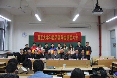 2012年11月22日下午,“83经济”奖学金颁奖仪式在仙2-109举行,永利集团88304官网常务副院长范从来教授、经济学院副院长安同良教授、永利集团88304官网党委副书记吕亚红老师以及江苏海外企业集团总裁黄宏亮、鸿意地产发展公司董事长陶炜等八名83级经济系校友参加了颁奖仪式,颁奖仪式由吕亚红老师主持。