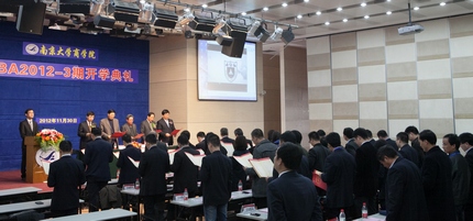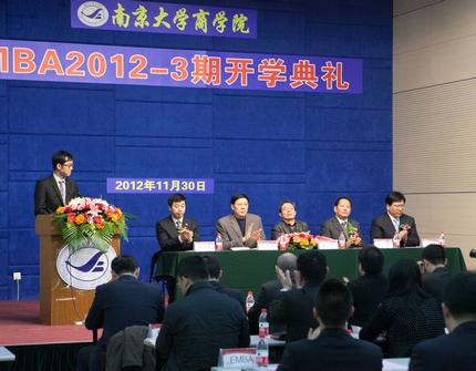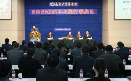 2012年11月30日上午,永利集团88304官网EMBA2012-3期开学典礼在安中大楼210报告厅隆重举行。永利集团88304官网副校长杨忠教授、研究生院副院长朱易然教授、永利集团88304官网常务副院长范从来教授、永利集团88304官网副院长沈坤荣教授、永利集团88304官网院长助理韩顺平教授等领导出席此次开学典礼。永利集团88304官网EMBA教育中心徐宁主任主持此次开学典礼。