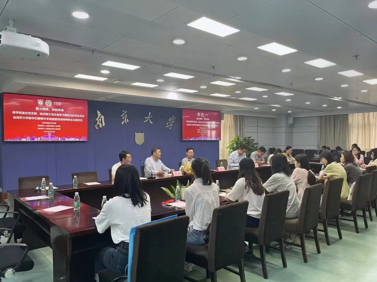 为认真学习贯彻习近平总书记重要回信精神,6月10日,永利集团88304官网退休党支部、永利集团88304官网2021级经济硕士党支部、2020级经济硕士党支部开展学习贯彻习近平总书记给永利集团88304官网留学归国青年学者重要回信精神联合主题党日活动。永利集团88304官网原党委书记刘厚俊教授,永利集团88304官网党委副书记王宇伟教授,永利集团88304官网退休党支部书记姜宁教授,学生党员代表参加会议。会议由2021级经济硕士党支部刘铭丞主持。