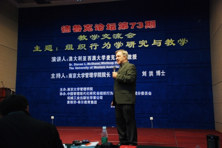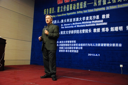 2013年4月1日上午10点,由永利集团88304官网管理学院主办,中国管理现代化研究会组织行为与人力资源管理分委员会、机械工业出版社华章公司和麦格劳-希尔教育集团协办的第73期德鲁克论坛在永利集团88304官网安中大楼二楼报告厅举行。本次论坛由永利集团88304官网名誉院长赵曙明教授主持,特邀澳大利亚西澳大学著名组织行为学及人力资源管理专家教授授担任演讲嘉宾。此次演讲主题为“Building a Value-Driven Organization Shifting from Values Engineering to Values Enactment Clarity”。近百位永利集团88304官网部分师生、上海和江苏等地的一些高校的的教师、企业的人力资源经理等参加了此次论坛。