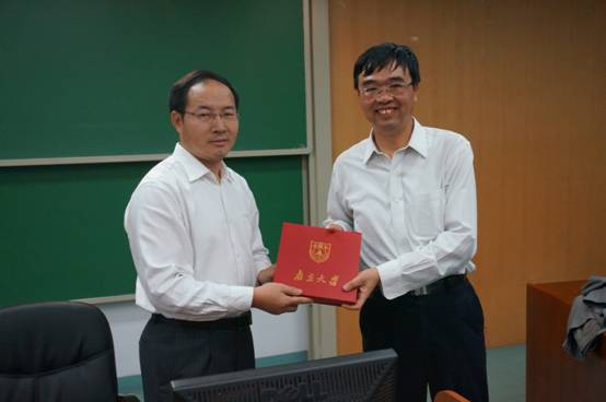 刘教授的讲座精彩生动,获得了同学们的热烈掌声。在刘力教授结束演讲之后,王长江教授作了总结并向刘教授赠送了礼物。