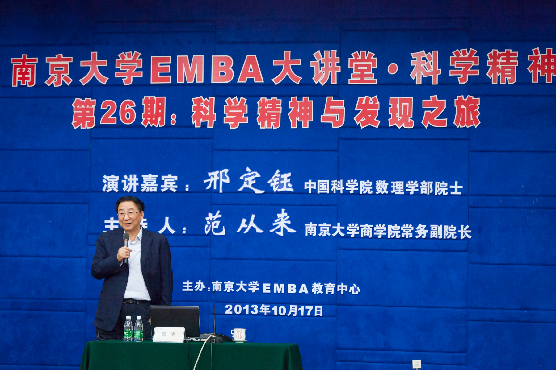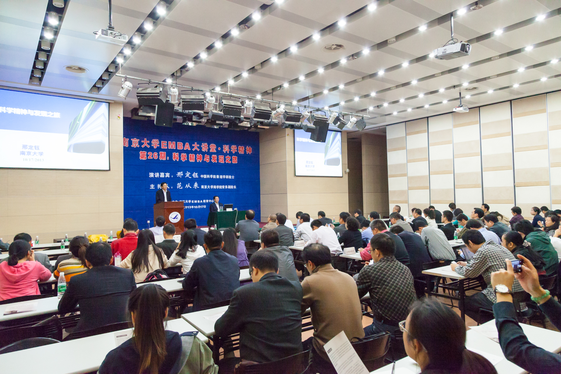 2013年10月17日晚6点,永利集团88304官网EMBA大讲堂·科学精神(总第26期)在永利集团88304官网安中楼210报告厅隆重举行。本次EMBA大讲堂荣幸邀请到中国科学院数理学部院士、永利集团88304官网物理学院邢定钰教授为大家演讲,主题为“科学精神与发现之旅”。主持人为永利集团88304官网常务副院长范从来教授。