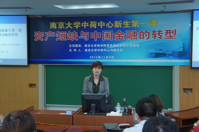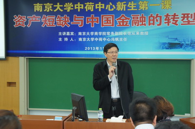 讲座开始前,中荷中心冯帆主任首先代表中心欢迎2013级的新生,并对同学们如此积极的上进的态度表示赞扬。接着有请范从来教授为中荷新生带来第一课“资产短缺与中国金融的转型”。