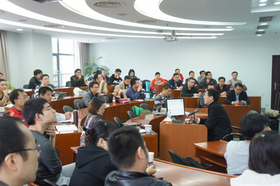 在大家的掌声中,中荷中心2013级新生第一课正式开始。范教授首先谈到了中外货币政策的问题,在详细的数据及理论的分析后得出中外货币政策是相悖的结论。接着分析了中国近年来的货币现状问题,从货币是否超发,如何定义超发,货币流通速度,货币量多少及中国物价现状等方面进行了详尽的分析。随后,又举例探讨研究了美国的经济状态并与中国的经济现状进行了对比。