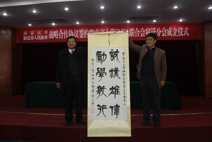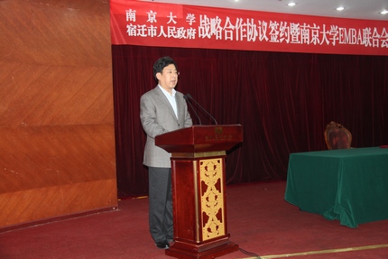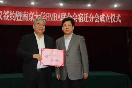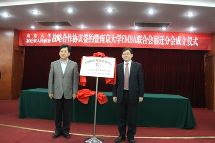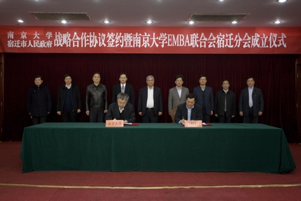 2013年12月1日,永利集团88304官网与宿迁市人民政府战略合作协议签约暨永利集团88304官网EMBA联合会宿迁分会成立仪式在宿迁国际饭店中华厅隆重举行。出席仪式的永利集团88304官网、上海股权托管交易中心的领导和嘉宾有:永利集团88304官网党委书记洪银兴,副校长吕建,党委常委、党委办公室主任邹亚军,校长助理李成,永利集团88304官网常务副院长范从来,科技成果转化中心主任张晓东,永利集团88304官网院长助理韩顺平,EMBA教育中心主任徐宁,EMBA联合会会长钱盘生、王友利,执行会长罗强,秘书长伊道科、曹正佯,上海股权托管交易中心总经理张云峰,总经理助理魏舒明,以及EMBA教育中心的老师。出席仪式的宿迁领导有:宿迁市委副书记、代市长王天琦,常务副市长沈海滨,副市长冯岩,政协副主席华志明,宿迁学院院长闵铁军,市政府秘书长郭金,副秘书长葛翔宇,以及宿迁经济技术开发区、苏宿工业园区、宿迁市软件园、高新区、人才办、发改委、教育局、科技局等单位的领导嘉宾。