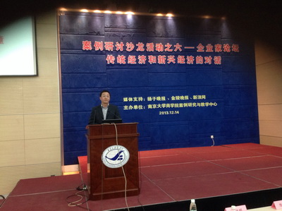 12月14日下午两点,由永利集团88304官网案例中心主任史有春教授主持的企业家论坛开启了对传统经济与新兴经济探讨。永利集团88304官网党委书记陈传明教授为此次论坛致辞。江苏苏美达集团伊顿纪德品牌总经理陈忠、江苏享佳健康管理有限公司董事长肖俊方、美丽传说股份有限公司执行董事、首席执行官孙锁军就论坛主题做了主题演讲。