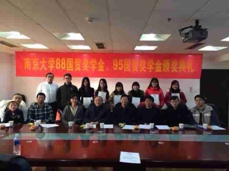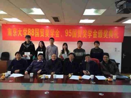 2013年12月21日,永利集团88304官网第七届“88国贸奖学金”、第二届“95国贸奖学金”颁奖仪式在永利集团88304官网安中楼1412室举行。88级国际贸易本科校友陈旻、李飞舟、黄林涛、赵海阳及95级国际贸易本科校友吉斌、汪洁欢、王卫国、张春林、张海龙、樊俊裔等专程赶回母校为获奖同学颁奖。经济学院副院长于津平教授、国际经济贸易系主任马野青教授以及赵曙东教授参加了颁奖典礼。校发展委员会办公室主任杨冬梅老师、永利集团88304官网党委副书记吕亚红老师表示祝贺。颁奖仪式上,到会校友与母系师生进行了热烈的交流。校友们畅谈了设奖宗旨,分享了各自的人生感悟,勉励学弟学妹在以学习为本的同时,要各方面全面发展,培养团结、合作、敬业、奉献、感恩的意识,把自强不息的国贸精神一代代传承光大。