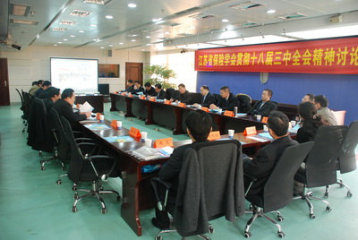 与会人员学习了《中共中央关于全面深化改革若干重大问题的决定》中与保险相关的内容。中国人寿江苏省分公司副总经理肖建友,南京财经大学金融学院院长闫海峰,永利集团88304官网副教授孙武军分别围绕三中全会的相关内容发表了见解。