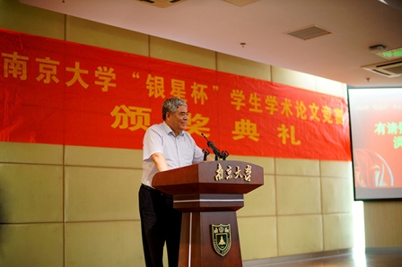 典礼伊始,陈传明老师介绍了“银星杯”学生学术论文竞赛的设奖由来,并宣读了永利集团88304官网关于颁发2014年“银星杯”本科生优秀学术论文奖的决定。“银星杯”学生学术论文竞赛创办于1990年,洪银兴教授将所获的国家级奖励“霍英东青年教育奖”的全部奖金捐出,奖励在学术科研方面积极进取,取得优良成绩的在校本科学生,迄今为止已经成功举办了24届,今年是第25届,是永利集团官网一年一度的学术盛会。本届论文竞赛吸引了众多学生参与,收到参赛论文347篇,经各系认真评审并按既定比例确定奖励等次,共评选出一等奖19篇,二等奖34篇,三等奖49篇和新人奖100篇。