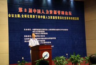 上午九点三十分大会进行了主题报告。首先,由赵曙明教授做题为“不连续时代的人力资源管理”的主题报告。组织的发展主要是靠人,随着经济的发展,公司越来越重视对人的培训和开发,企业之间的竞争实质上是人才的竞争。电子化、网络化的时代已经到来,并且正在改变我们的生活工和作方式。学习知识很重要,但是更重要的挑战是怎样将知识进行整合,将知识应用于实践。在不连续的时代要建立高素质、高协作性、高积极性的人才队伍,培养具有知识、胆识和见识的学习型管理者。人力资源管理的核心之处,就在于怎样引导人、塑造人。