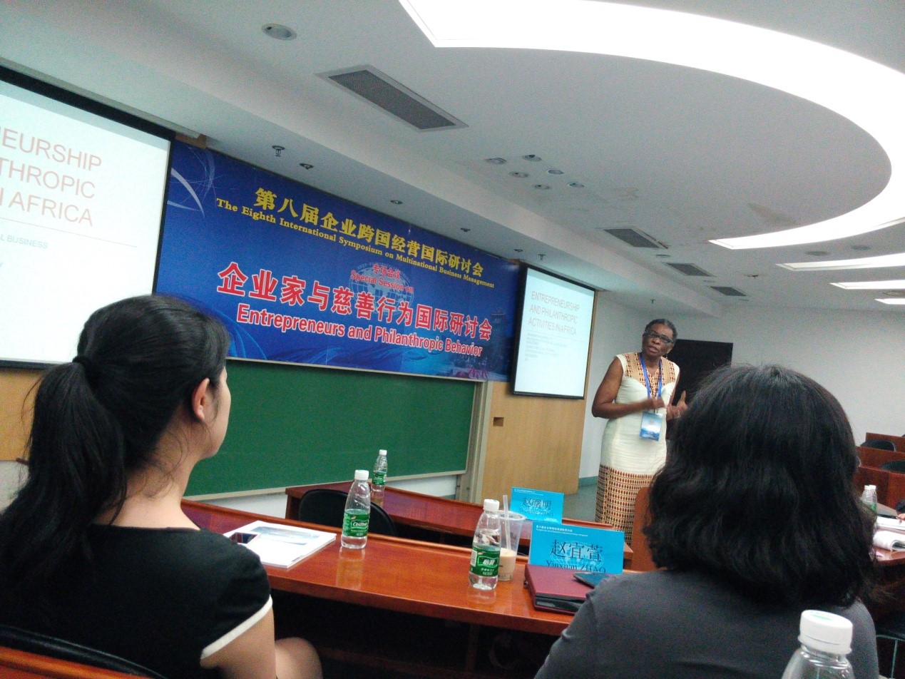 Anyansi-Archibong教授则对非洲的私营企业及企业家精神的兴起做了阐述。她认为在非洲,新兴企业家与上一代的企业家在参与慈善时候的表现是不一致的。她认为部分企业家是受到宗教与文化使命的驱使进行慈善捐赠的,同时部分企业家可能会是有兴趣致力于解决贫困,或是愿意为别人提供教育机会。她认为在非洲企业家慈善行为方面,存在以下不足:受捐者与捐赠者之间的信息不透明、基金的分配效率不足或是管理不力、社会需求估计不足多样性水平等。