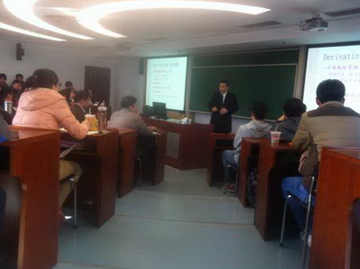 11月18日晚上,台湾东海大学财务金融学系王凯立教授作了“远期外汇市场在金融时间序列中的应用”的主题报告。王教授本着授人以鱼不如授人以渔的思想,对论文进行了很多扩展,丰富了同学们的知识,开阔了学生的视野。最后,尽管王老师已经讲了两个多小时,但还是很耐心地回答了学生的提问。