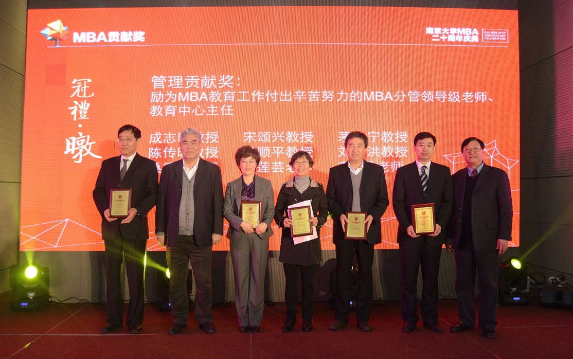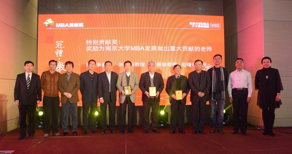 第二项议程是永利集团88304官网MBA奉献奖颁奖仪式,由永利集团88304官网党委书记陈传明教授宣读名单。首先是奖励为永利集团88304官网MBA发展做出重大贡献老师们的“特别贡献奖”:周三多教授、洪银兴教授、刘厚俊教授、赵曙明教授荣获此殊荣。奖励二十年来较早并持续为MBA授课、指导论文的34位老师获得“教学贡献奖”。奖励9名为MBA教育工作付出辛苦努力的MBA分管领导级老师、教育中心主任“管理贡献奖”。为多次给MBA学生提供实战指导、帮助面试和答辩的优秀兼职导师颁发“兼职导师贡献奖”。